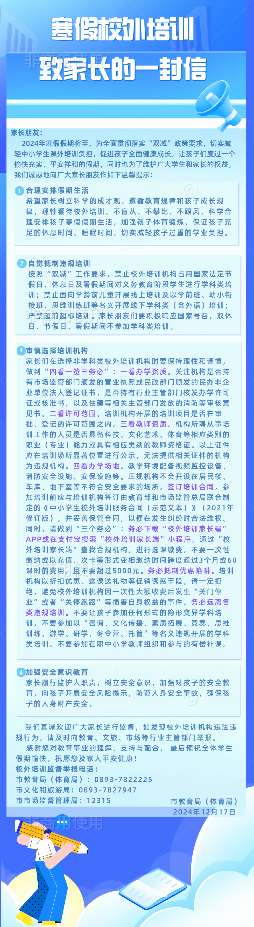 寒假校外培训致家长的一封信