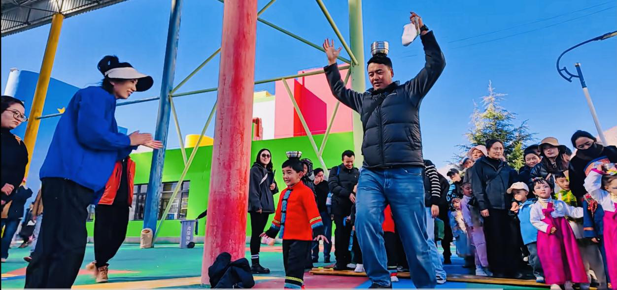 11月7日,山南市第二实验幼儿园举办了以“凝聚民族力量 闪耀多彩童年”为主题的第九届冬季亲子游园运动会。活动现场,各班小朋友身着绚丽的民族服装,与父母携手参与各类亲子游戏,加油声、欢笑声此起彼伏。本次运动会设置了亲子击牛角、亲子顶碗走等趣味民族游戏项目,不仅锻炼了孩子们的身体素质,还增进了亲子间的情感交流,促进民族团结教育从娃娃抓起,让孩子们在欢乐中感受民族文化的魅力!