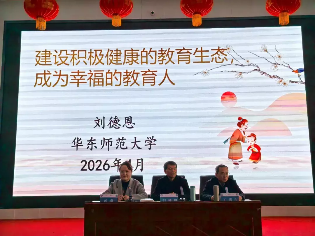 随后,刘德恩教授以《建设积极健康的教育生态 成为幸福教育人》为主题开展专题讲座。刘教授结合教师工作实际,围绕职业倦怠识别、情绪压力管理、自我关怀技巧、师生沟通中的心理调适等核心内容,通过理论讲解、真实案例剖析、互动体验、现场答疑等多种形式,深入浅出地剖析了教师常见心理困扰的成因与应对策略,为教师们送上了实用的“心理调适锦囊”。讲座过程中,教师们参与热情高涨,互动环节氛围尤为热烈。大家主动分享自身工作中遇到的压力场景与情绪困扰,刘教授针对性地给出专业分析与可落地的调适建议,不少教师现场记录要点、主动提问交流。课后,教师们纷纷反馈,本次讲座“干货满满、直击痛点”,既解开了自己在压力管理上的困惑,也学到了可直接应用的心理调节方法,对后续调整工作状态、守护自身心理健康充满信心。