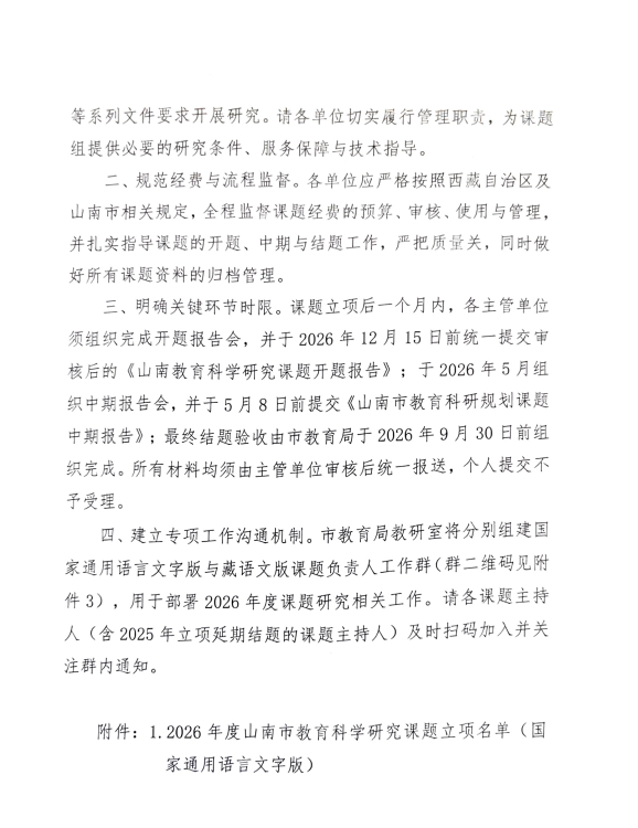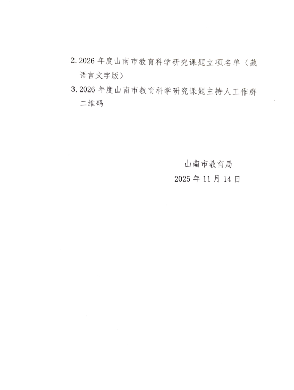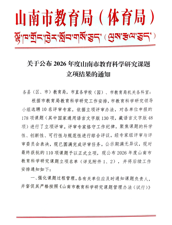 关于公布2026年度山南市教育科学研究课题立项结果的通知