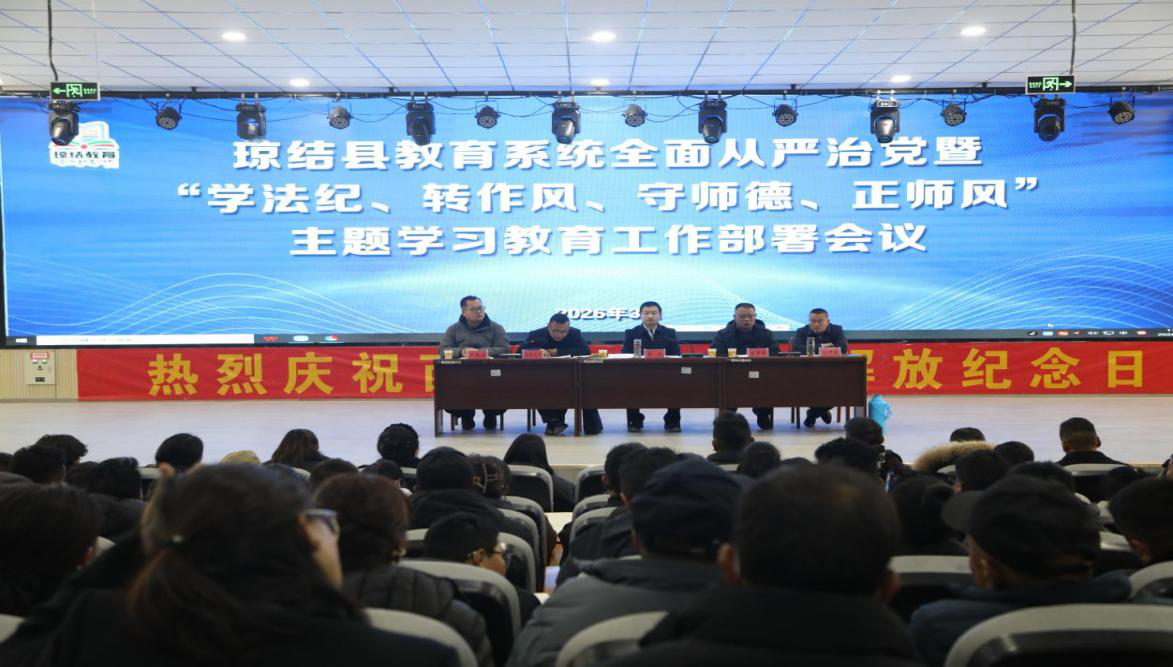 琼结县:为深入贯彻落实全面从严治党要求,进一步加强教师队伍政治建设和师德师风建设,规范教师职业行为,筑牢教育系统廉洁从教防线,3月29日,琼结县召开教育系统全面从严治党暨“学法纪、转作风、守师德、正师风”主题学习教育工作部署会议。