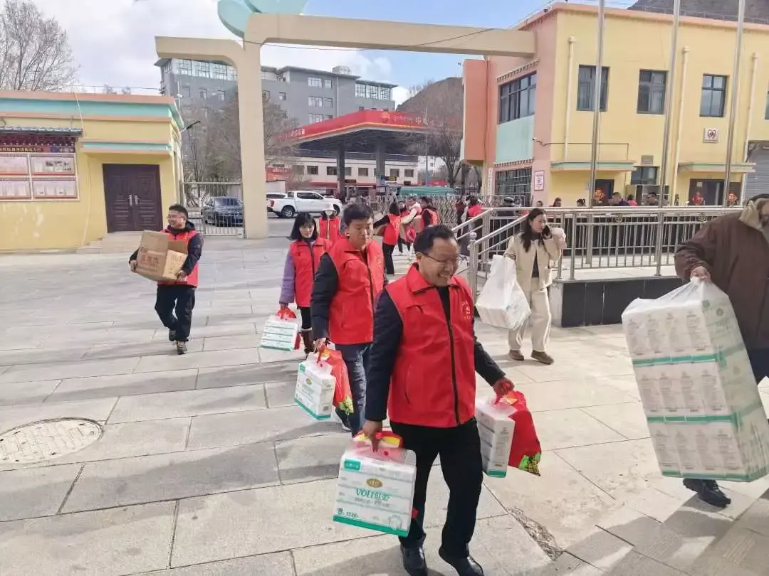 【局机关党员干部为福利院儿童搬运捐赠的生活物资】